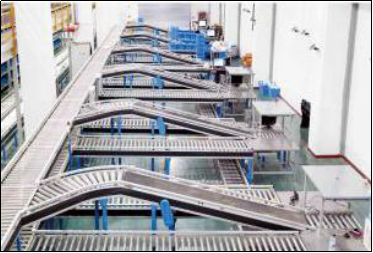 自動(dòng)化、智能化的輸送分揀系統(tǒng)貫穿出入庫(kù)、上架、補(bǔ)貨、復(fù)核、分揀全部倉(cāng)儲(chǔ)流程,輸送效率1200件/時(shí),分揀效率1800件/時(shí)。
